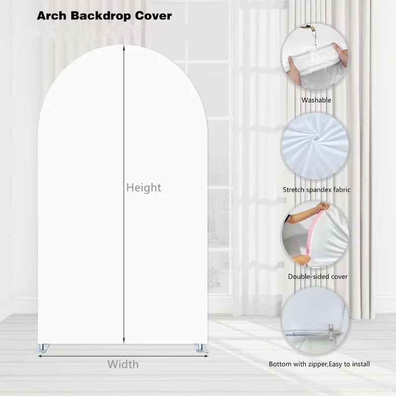 If you already have a stretch spandex arch backdrop cover, the design can be printed directly onto fabric. These covers slide over the arch frame and create a smooth, professional look.