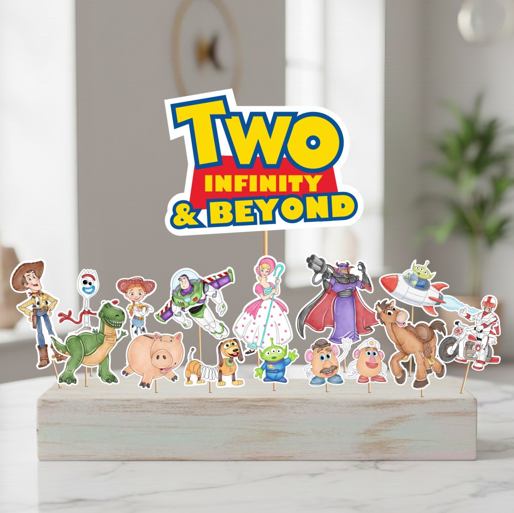 If you’re looking for printable Toy Story birthday decorations, these Two Infinity and Beyond centerpieces are available as an instant digital download.
